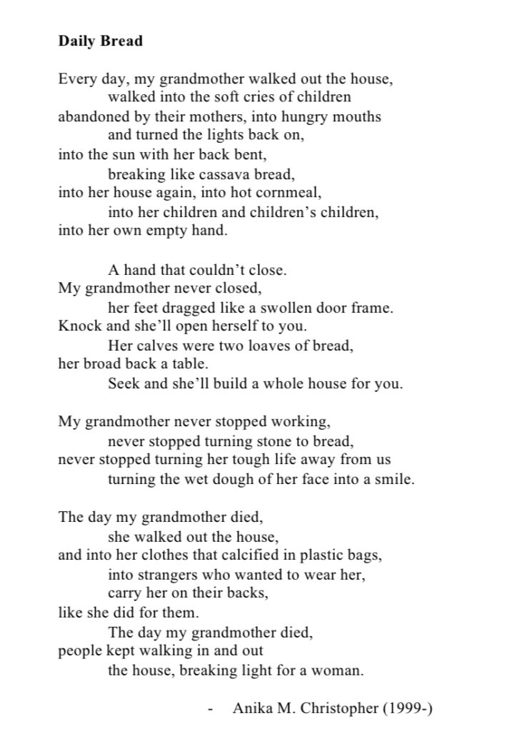 Anika Christopher is a poet, writer and author. She uses words to empower others and give back to her community, writing for both children and adults. She is currently working on her first young adult collection of poems and has published 2 picture books  “Planting Peace” and “Anansi and the Green Sea Turtles”. Alongside this, Anika sits on the British Virgin Islands youth parliament, and was the lead organiser for the Virgin Island’s first literary festival. Anika is currently studying for a BA in Literatures in English and Creative Writing from the University of the West Indies.