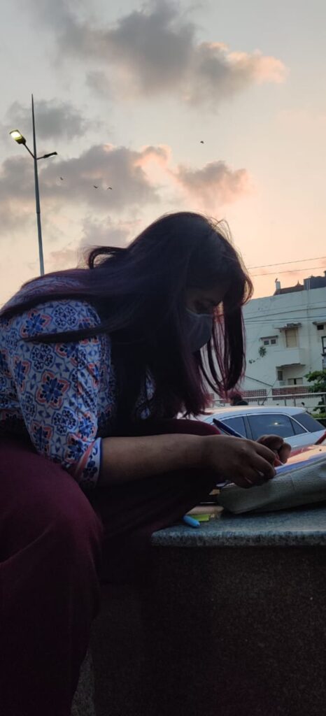 “I’ve been defined as a hopelessly hopeless romantic by my peers. You would most probably see me typing poetry in my typewriter for poetry busking, performing, socializing at open mics across Chennai and other cities, or curating my networks.”